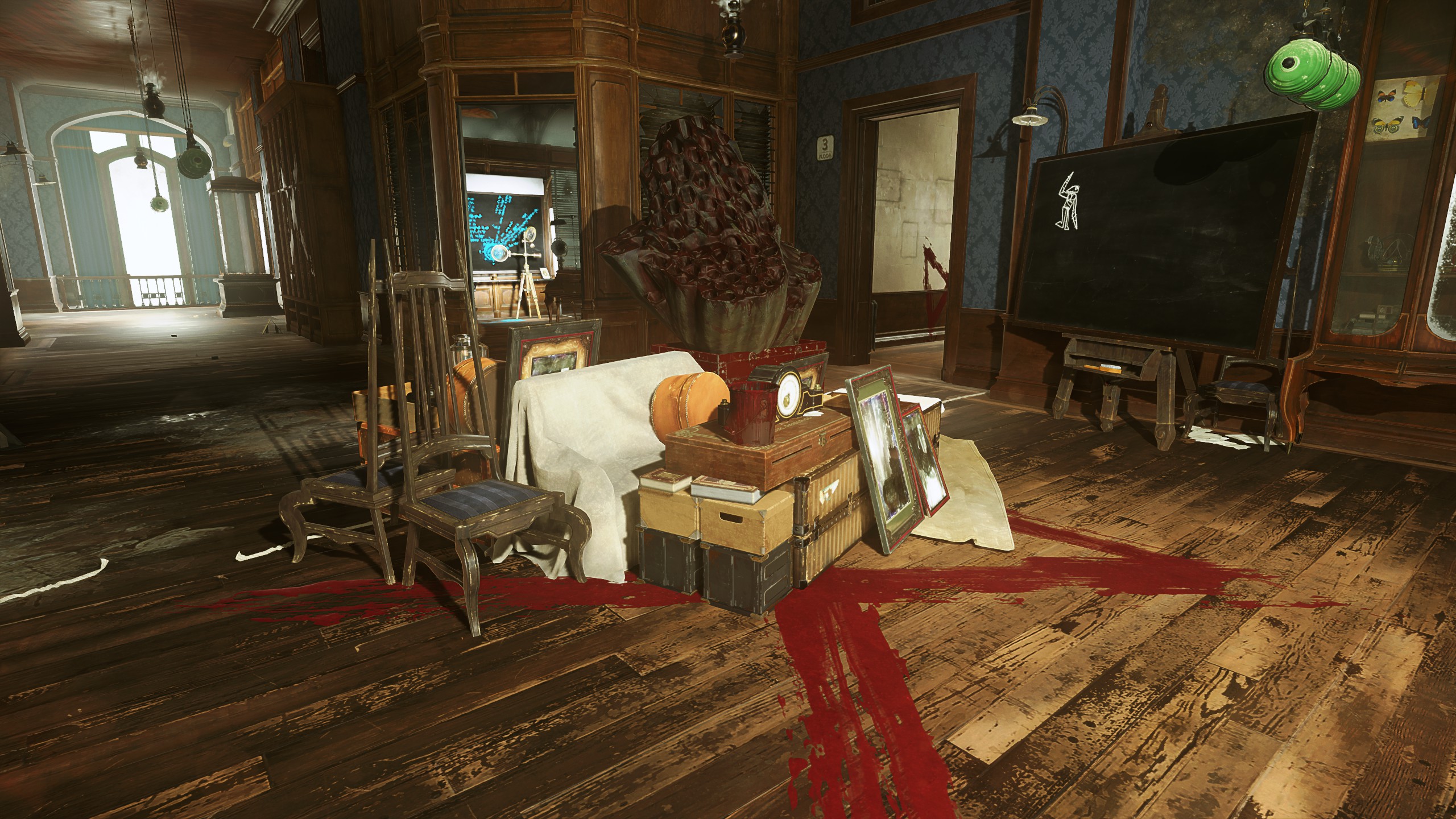 The building has been the testimony of conflicts and several rooms have been stained by it. Player needs to resolve a bunch of enigmas or explore thoroughly to unfold them all.