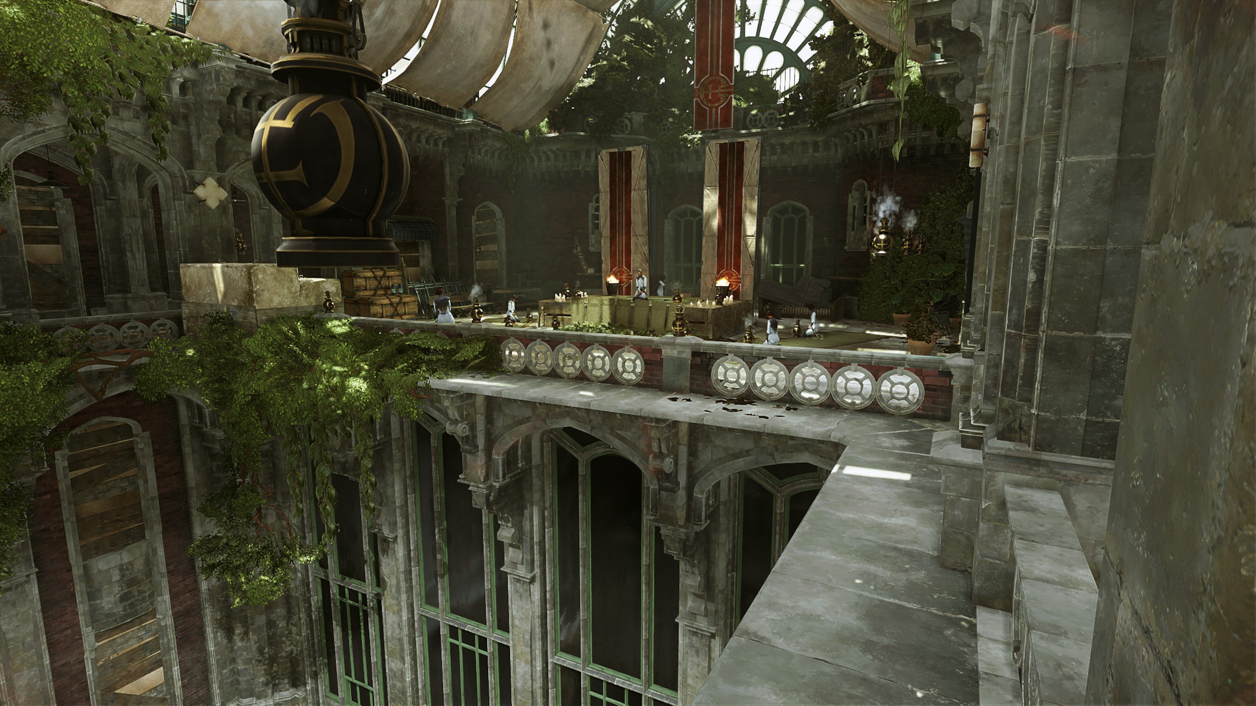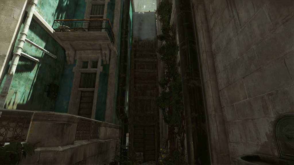 Given the reduced budget constraints for that Standalone game, locking-up the district to allow an efficient hunt of the “heretics” made perfect sense. It allowed us to bring heavy and clear street blockers with a crystal clear affordance. Using the same space was also an opportunity to put emphasis and interest on areas that were more empty in Dishonored 2. Still, I felt the need to tell the stories of the people left behind in that area or of those who left, thus some civilians can still be found in the streets by exploring and Player can take part in their stories.