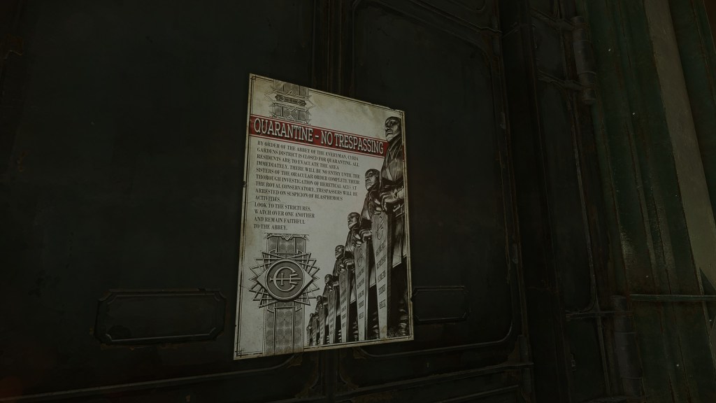 Narrative Pitch for the map was: The Conservatory is under the strict law of the Abbey, Overseers stormed the place a few days ago and worked on the eradication of Delila’s witches and inventorying the Museum’s content.